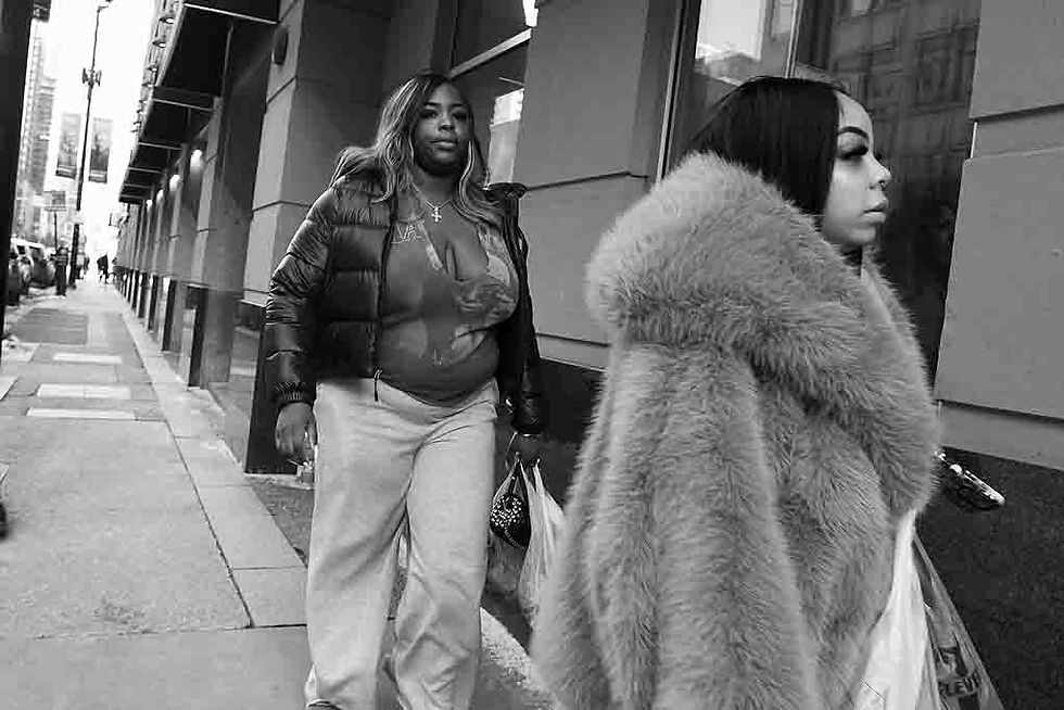 In Chicago’s downtown on a Sunday afternoon, every corner holds potential for such stories. The interplay of light and shadow, the expressions of passersby, the small interactions between strangers—all these elements combine to create images that resonate deeply.