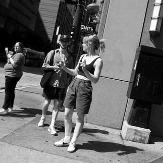 The beauty of street photography lies in its unpredictability. Unlike staged portraits or landscapes, it thrives on the unexpected. One of Liu's signature photographs shows a group of teenagers dancing energetically on the sidewalk, their joy infectious. This moment, filled with laughter and energy, captures the spirit of Chicago on a Sunday.